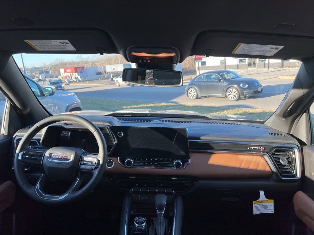 2026 GMC Canyon AT4 4D Crew Cab 2.7L I4 Turbocharged DOHC 16V LEV3-SULEV30 310hp 8-Speed Automatic 4WD Onyx Black Interior Color: Jet Black/Timber Leather, 120-Volt Bed Mounted Power Outlet, 2 1st Row USB Charge/Data Ports, 2 Rear USB Ports in Center Console (Charge-Only), 3.42 Rear Axle Ratio, 4-Way Manual Front Passenger Seat Adjuster, 4-Wheel Disc Brakes, 6 Speakers, 6-Speaker Audio System Feature, 6-Way Power Passenger Seat Adjuster, 8-Way Power Driver Seat Adjuster, ABS brakes, Air Conditioning, AM/FM radio: SiriusXM with 360L, Apple CarPlay/Android Auto, AT4 Premium Package, Auto High-beam Headlights, Auto-dimming Rear-View mirror, Automatic Emergency Braking, Automatic Stop/Start, Automatic temperature control, Blind Zone Steering Assist with Trailering, Brake assist, Bright Exhaust Tip, Bumpers: body-color, Canyon Pro Safety, Canyon Safety Plus Package, Cloth/CoreTec Seat Trim, Compass, Delay-off headlights, Driver and Front Passenger Illuminated Visors, Driver and Front Passenger Ventilated Seats, Driver door bin, Driver Memory, Driver Mode Selector, Driver Seatback Map Pocket, Driver vanity mirror, Dual front impact airbags, Dual front side impact airbags, Dual-Zone Automatic Climate Control Air Conditioning, Electronic Stability Control, Emergency communication system: OnStar, EZ-Lift and Lower Tailgate, Fog Lights, Following Distance Indicator, Forward Collision Alert, Front anti-roll bar, Front Bucket Seats, Front Center Armrest, Front dual zone A/C, Front LED Fog Lamps, Front License Plate Kit, Front Passenger Seatback Map Pocket, Front Pedestrian and Bicyclist Braking, Front reading lights, Front wheel independent suspension, Heated door mirrors, Heated Driver and Front Passenger Seats, Heated Front Seats, Heated Steering Wheel, Illuminated entry, Inside Rear-View Auto-Dimming Mirror, IntelliBeam Automatic High Beam on/Off, Interior Overhead Courtesy Light with Dual Reading Lamp, Lane Keep Assist with Lane Departure Warning, Low tire pressure warning, MultiStow Tailgate Storage Compartment, Navigation System, Occupant sensing airbag, Off-Road Suspension, Outside temperature display, Overhead airbag, Overhead console, Panic alarm, Passenger door bin, Passenger vanity mirror, Perforated Leather-Appointed Seat Trim, Polished Alloy wheels, Power door mirrors, Power Driver Lumbar Control Seat Adjuster, Power driver seat, Power Passenger Lumbar Control Seat Adjuster, Power steering, Power windows, Preferred Equipment Group 4SG, Radio data system, Radio: 11.3 Diagonal Premium GMC Infotainment System, Rear Center Fold-Down Armrest with 2 Cupholders, Rear Cross Traffic Braking, Rear of Console 120-Volt Power Outlet, Rear Park Assist, Rear reading lights, Rear step bumper, Rear window defroster, Remote Keyless Entry, Remote Vehicle Starter System, Security system, SiriusXM with 360L, Speed control, Speed-sensing steering, Split folding rear seat, Spray-on Bedliner with GMC Logo, Steering wheel mounted audio controls, Stop/Start System Disable Button Engine Control, Tachometer, Tailgate Keyed Cylinder Lock, Telescoping steering wheel, Til and Telescopic Manual Steering Column, Tilt steering wheel, Traction control, Trip computer, Variably intermittent wipers, Wheels: 18 x 8.5 Gloss Black Aluminum, Wireless Apple CarPlay/Wireless Android Auto, Wireless Phone Charging.
